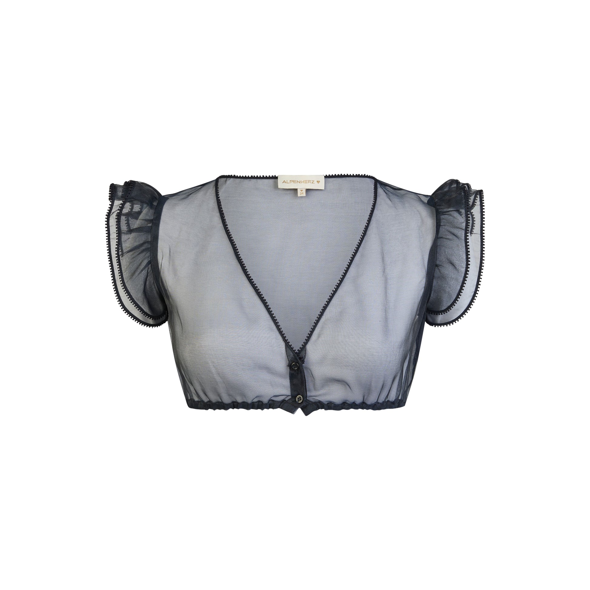 Diese elegante Dirndlbluse von Alpenherz besticht durch ihren transparenten Stoff und die raffinierten Flügelärmel. Der leichte, zarte Stoff sorgt für einen modernen Look und setzt das Dirndl stilvoll in Szene. Die besondere Schnittführung verleiht der Bluse eine luftige Ausstrahlung, während sie sich dank hochwertiger Verarbeitung angenehm trägt.