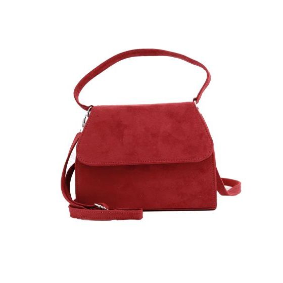 Kleine Koffertasche in Velourlederoptik, mit großem Henkel und abnehmbarem Trageriemen.