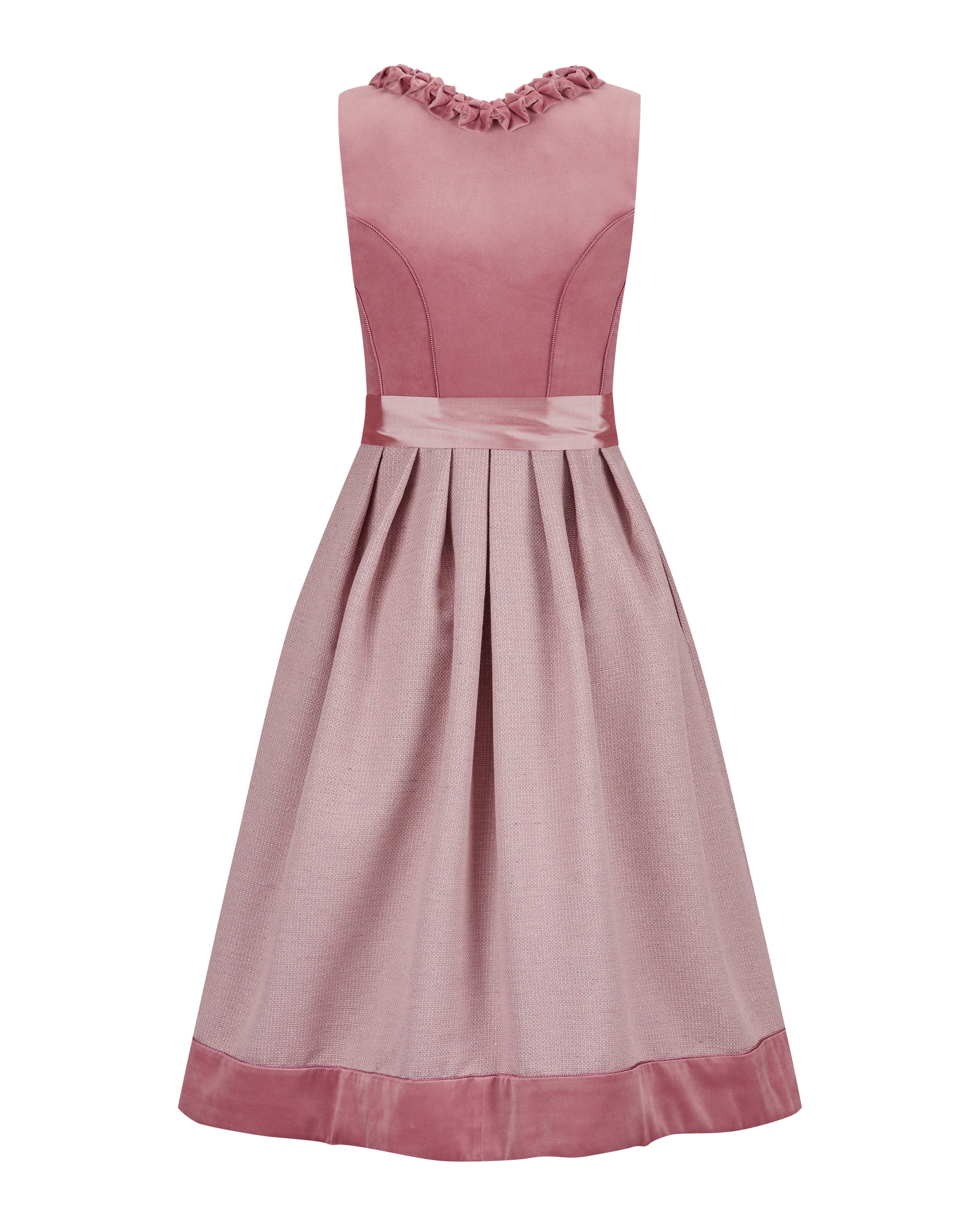 Das Dirndl Rosalie begeistert mit romantischer Ausstrahlung und liebevollen Details. Der schimmernde Samtmieder verleiht dem Oberteil eine edle, weiche Haptik, während die feine Froschgoscherl-Borte den Ausschnitt klassisch umrahmt und die Silhouette betont.