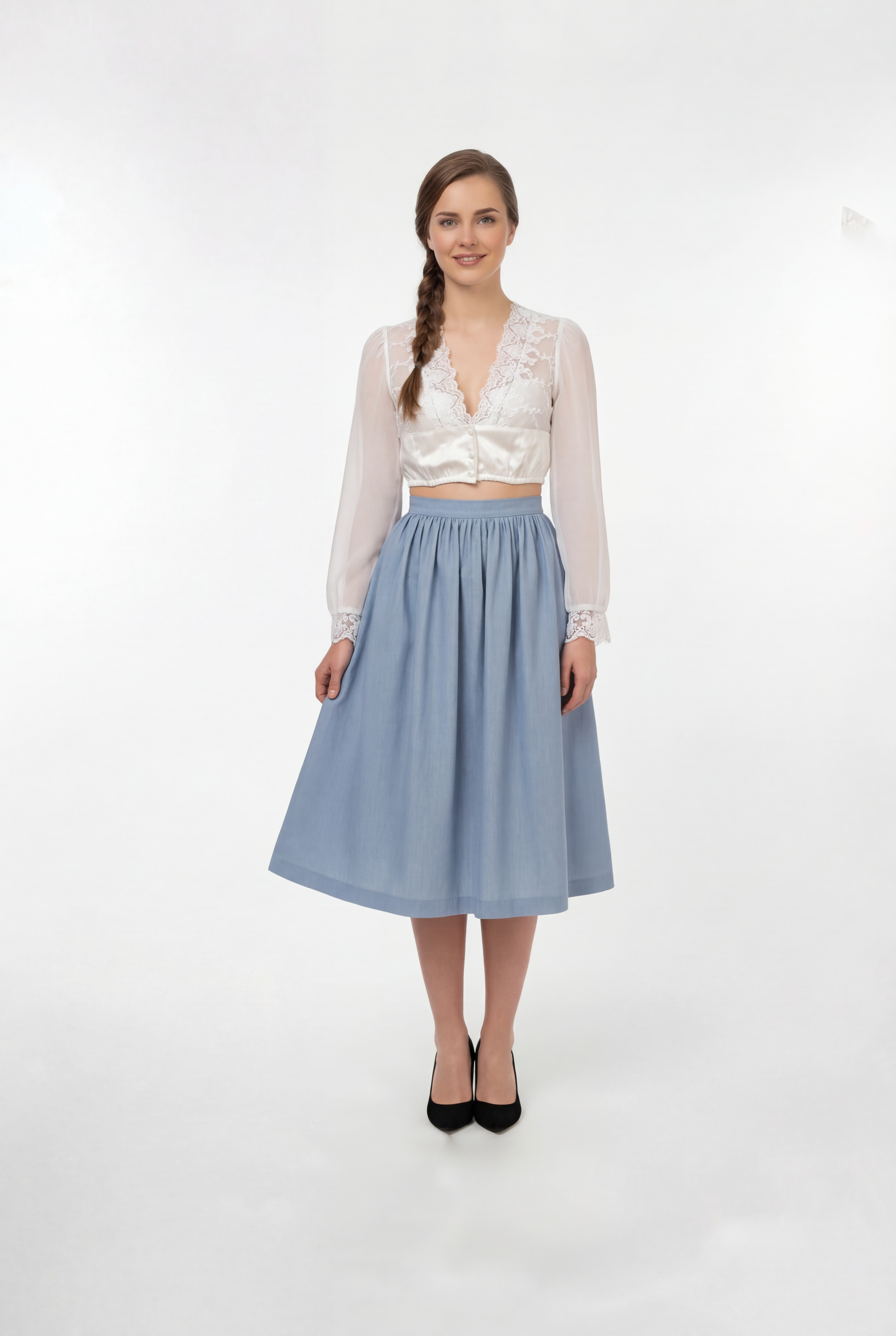 Die Dirndlbluse Walldorf vereint klassische Eleganz mit femininer Leichtigkeit. Die langen, transparenten Ärmel verleihen der Bluse eine edle Ausstrahlung und setzen stilvolle Akzente zu jedem Dirndl.