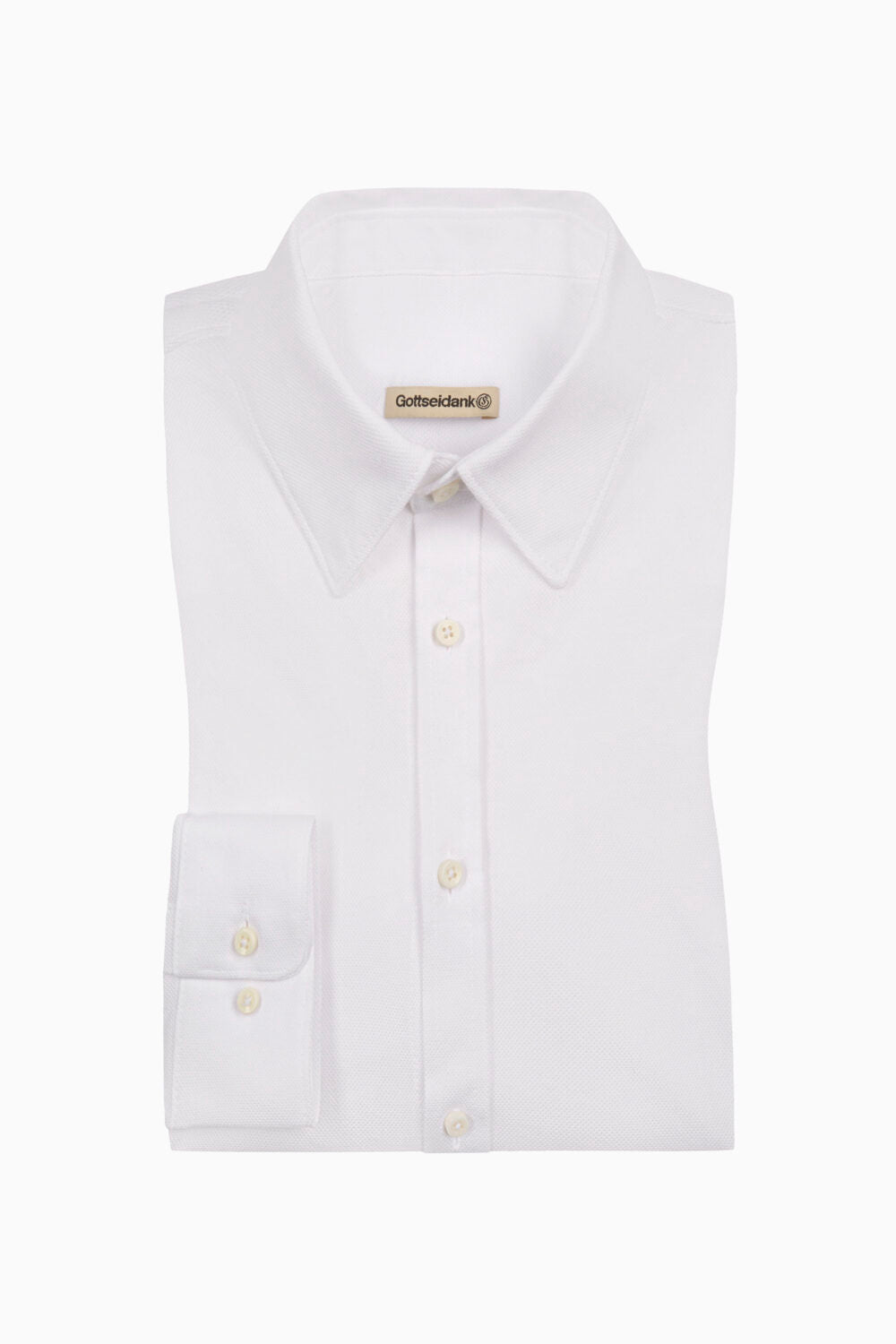 Dieses hochwertige Kragenhemd überzeugt mit traditionellem Stil und liebevollen Details. Echte Rinderbeinknöpfe, eine weitenregulierbare Einknopf-Manschette und ein abgerundeter Saum sorgen für Komfort und einen klassischen Look.