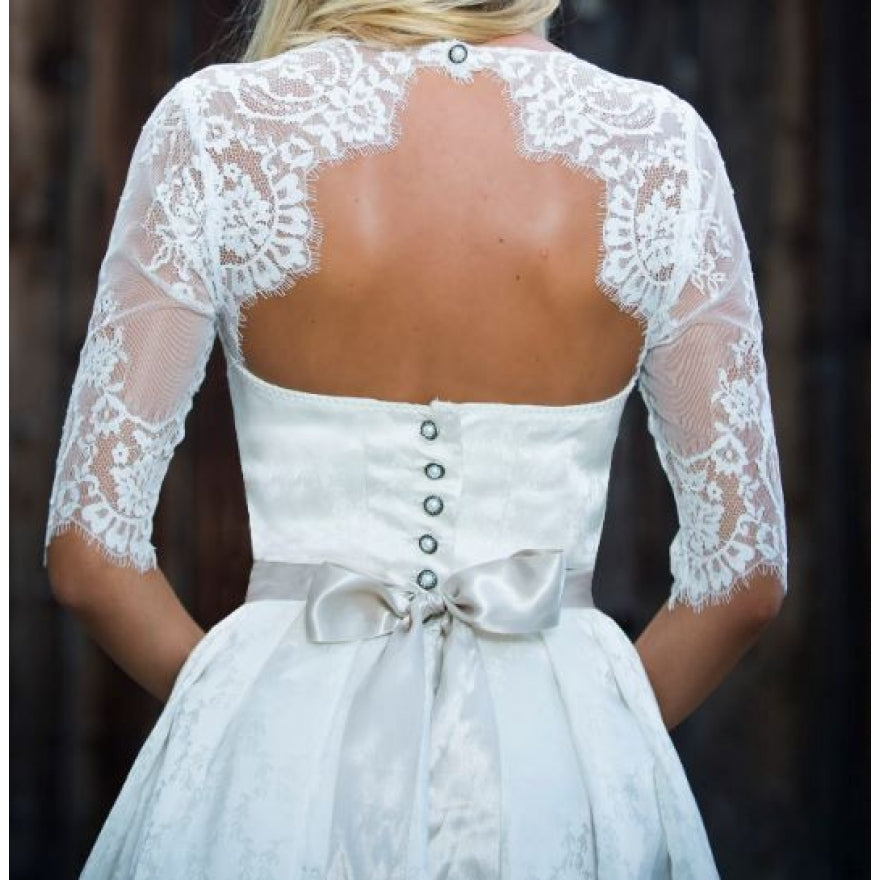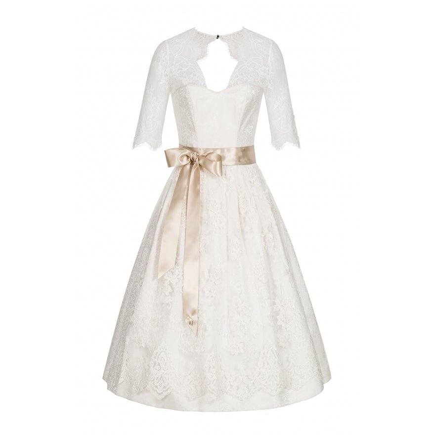 Grace ecrue Alpenherz, A-Linie, Hochzeitsdirndl & Tracht, V-Ausschnitt, Halbarm, ausgeschnittener Rücken, Schlüsselloch-Rücken, wadenlang, Material 100% Polyester