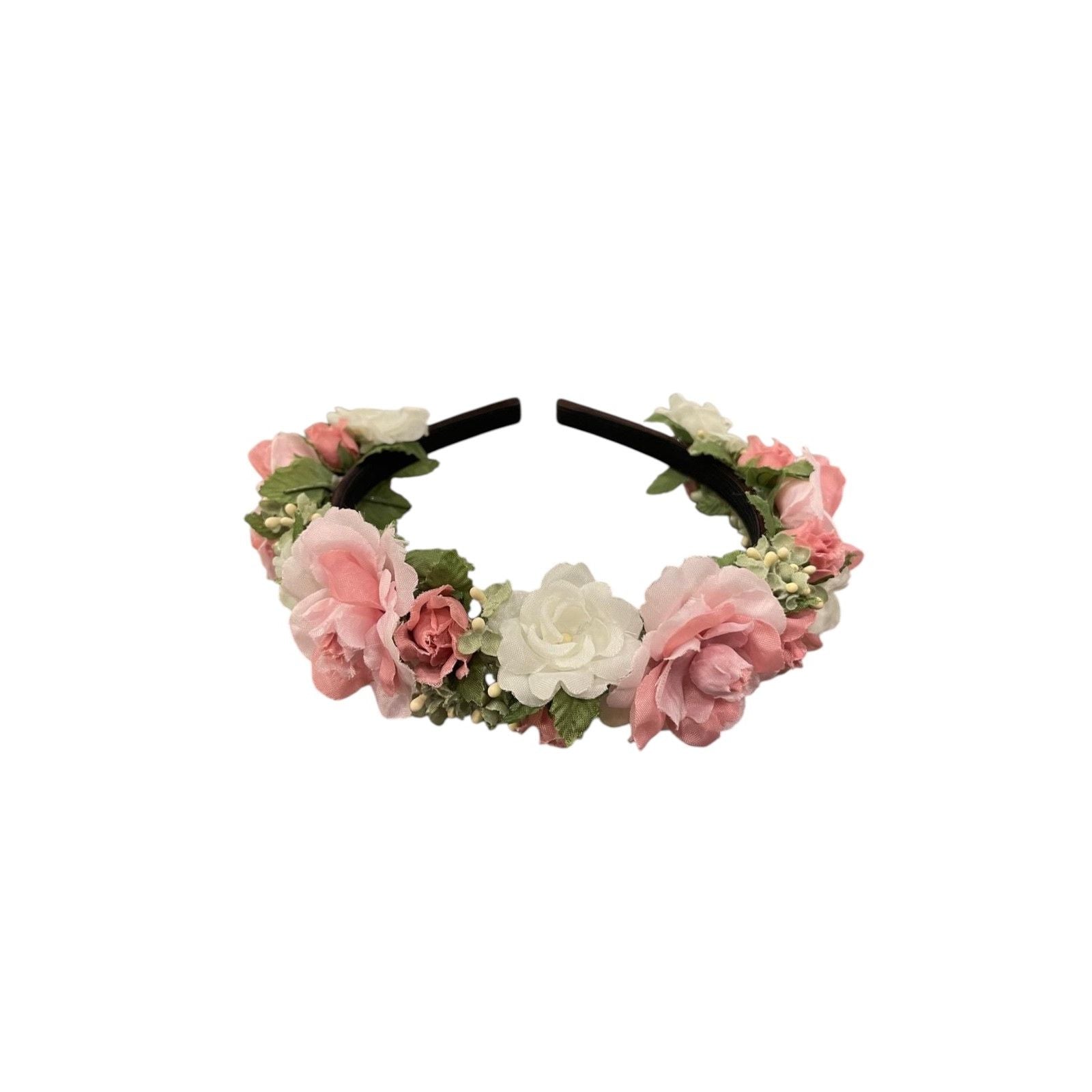 Besondere Haarreifen mit Blüten in rosa weiß.