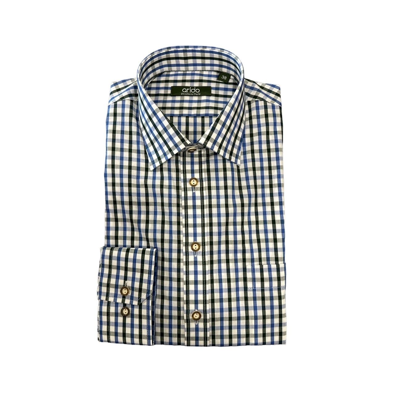 Klassisches Herrn Hemd von Arido. Es ist blau grün karriert und gerade geschnitten.