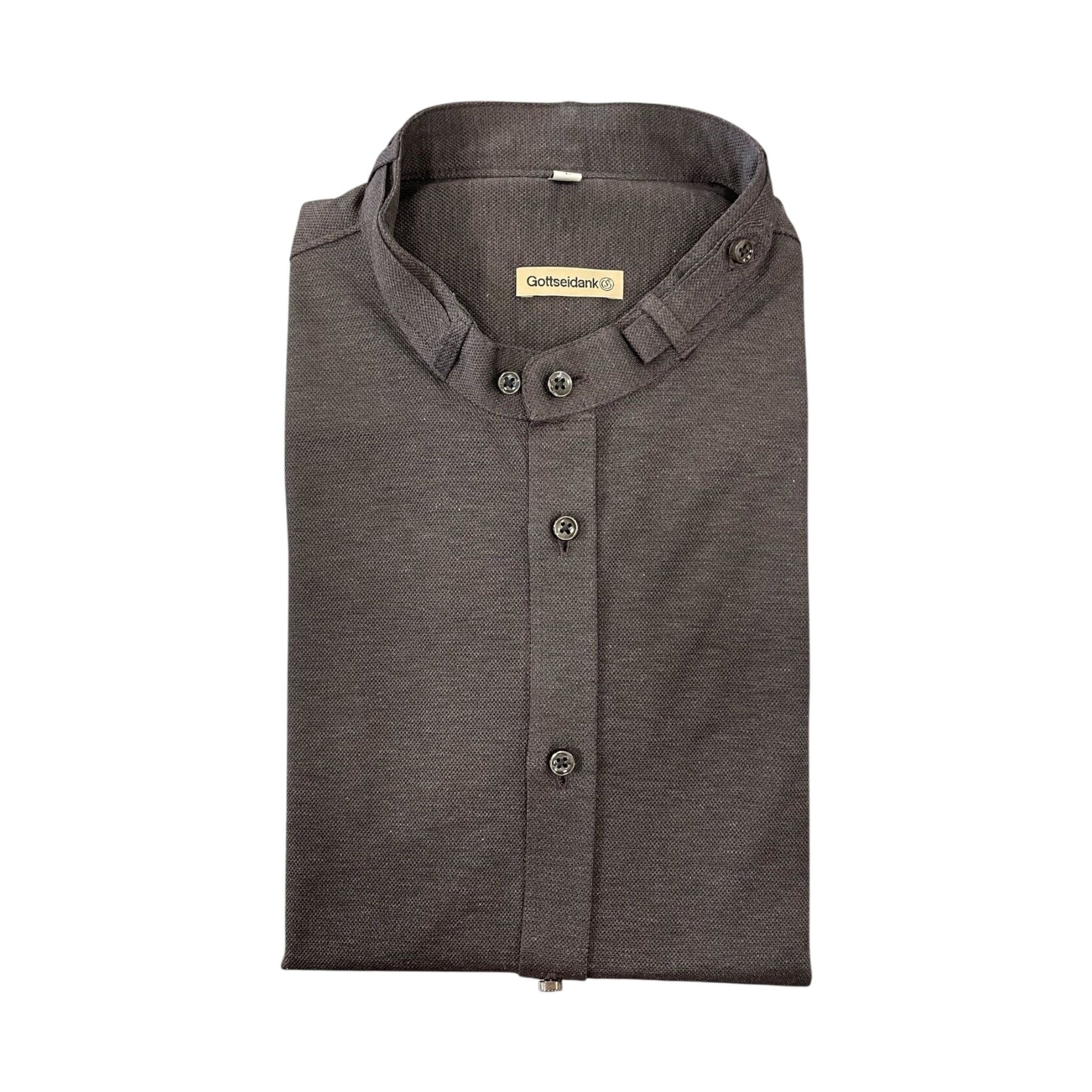 Klassisches Stehkragenhemd in anthrazit von Gottseidank. Es ist tailliert geschnitten & hat lange Ärmel.
