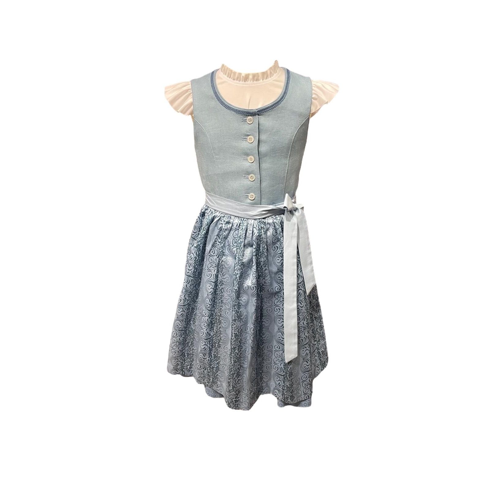 Wünderschönes Kinderdirndl von Kaiseralm in Hellblau . Das Oberteil ist aus feinem Leinenstoff , es hat zwei Abnäher und eine kleine Bordüre m Kragen. Der Rock ist aus Baumwolle und hat ein Blumenmuster im Stoff. Die Schürze ziert ein Hellblaues Schleifenband,sie hat eine Bördüre aus Blumen gedruckt. Die Bluse ist im Preis nicht Endhalten.