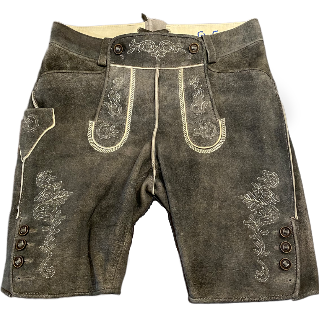 Die Lederhose Ralf von Ledergott ist in schlammbrauner optik gehalten - sie hat schöne Stickverzierungen und ist zeitlos schön.