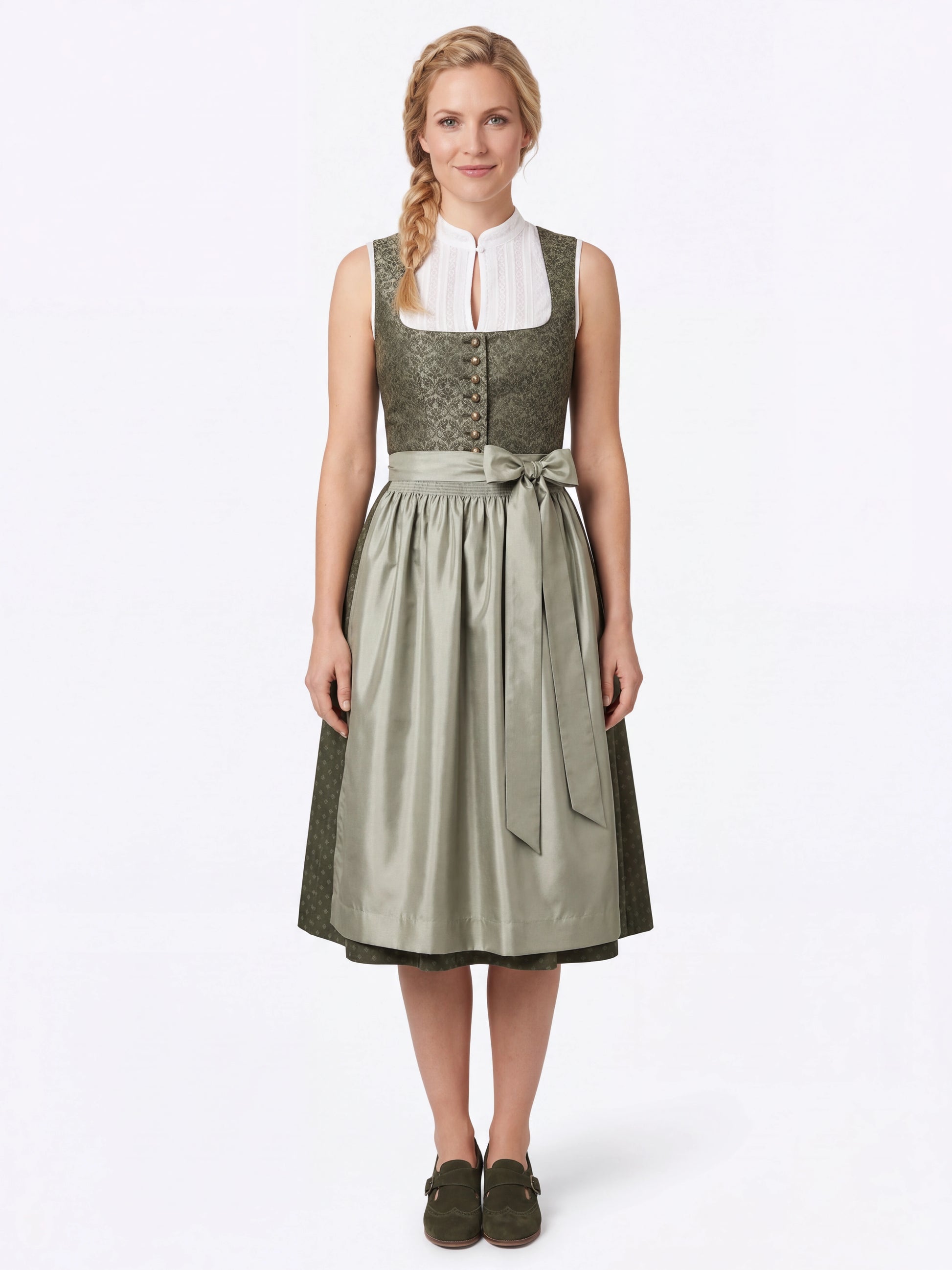 Der feminine Schnitt betont die Silhouette und sorgt für eine schmeichelhafte Passform, während hochwertige Materialien und sorgfältige Verarbeitung höchsten Tragekomfort garantieren. Ob traditionell kombiniert oder modern interpretiert – dieses Dirndl ist vielseitig einsetzbar und ein echter Blickfang.
