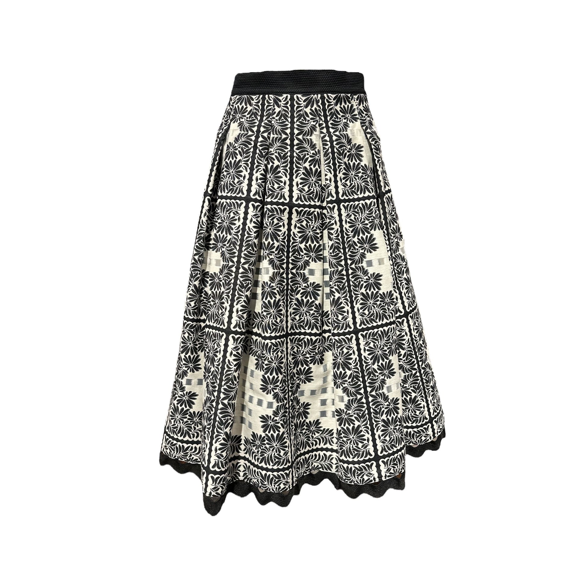Eleganter Trachtenrock von Wenger in ecru/schwarz gemustert. Er ist in Falten gelegt & hat dadurch einen sehr schönen Fall.