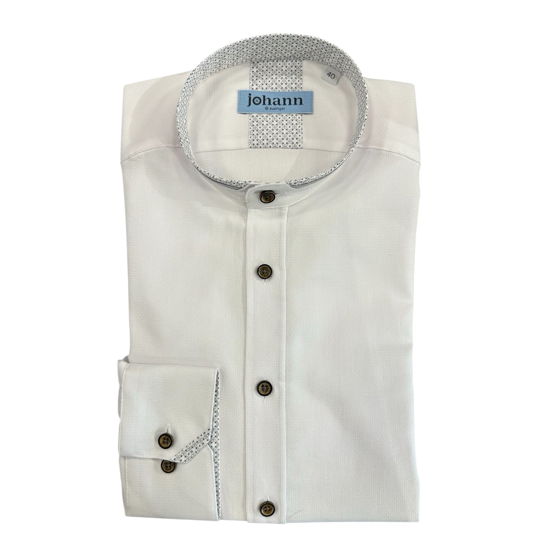 Klassisches Sthekragenhemd in weiss/grau von Johann. Es ist normal geschnitten.