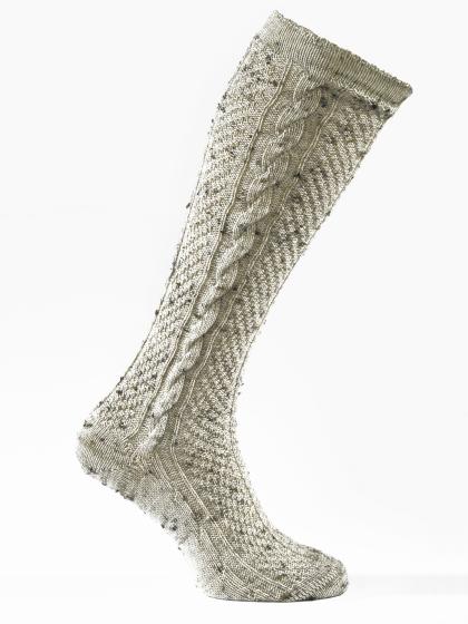 Hochwertiger Herrenstrumpf in rustikaler Melé-Optik mit plastisch handgenähtem Zopf auf Außenseite.